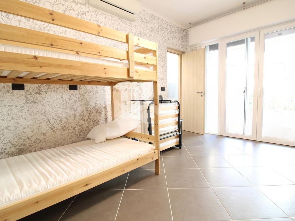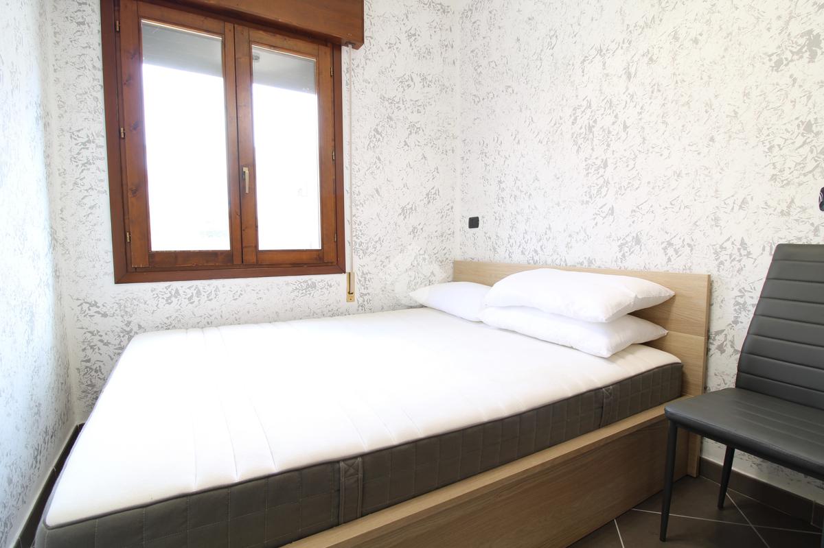 La camera matrimoniale, di ampie dimensioni, è in grado di ospitare fino a quattro posti letto ed è servita da un secondo bagno con box doccia. Una grande porta finestra garantisce luminosità naturale e accesso diretto al giardino, spazio esterno riservato e perfetto per vivere momenti di relax o convivialità.