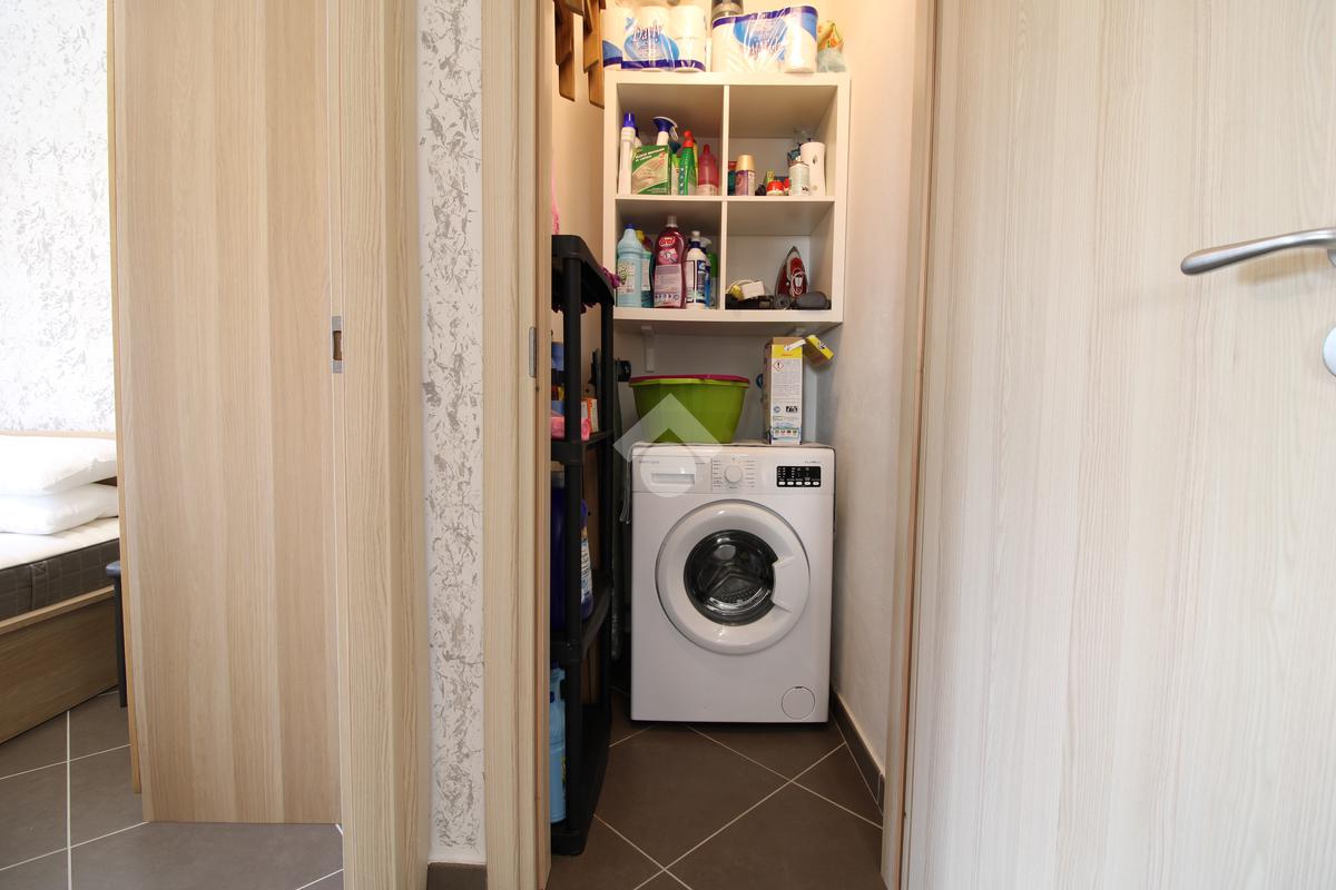 L’ingresso si apre su un luminoso soggiorno con angolo cottura, ambiente accogliente e ben organizzato, ideale come zona giorno. Un disimpegno conduce alla zona notte, composta da un bagno finestrato con box doccia, una camera singola e un pratico ripostiglio.