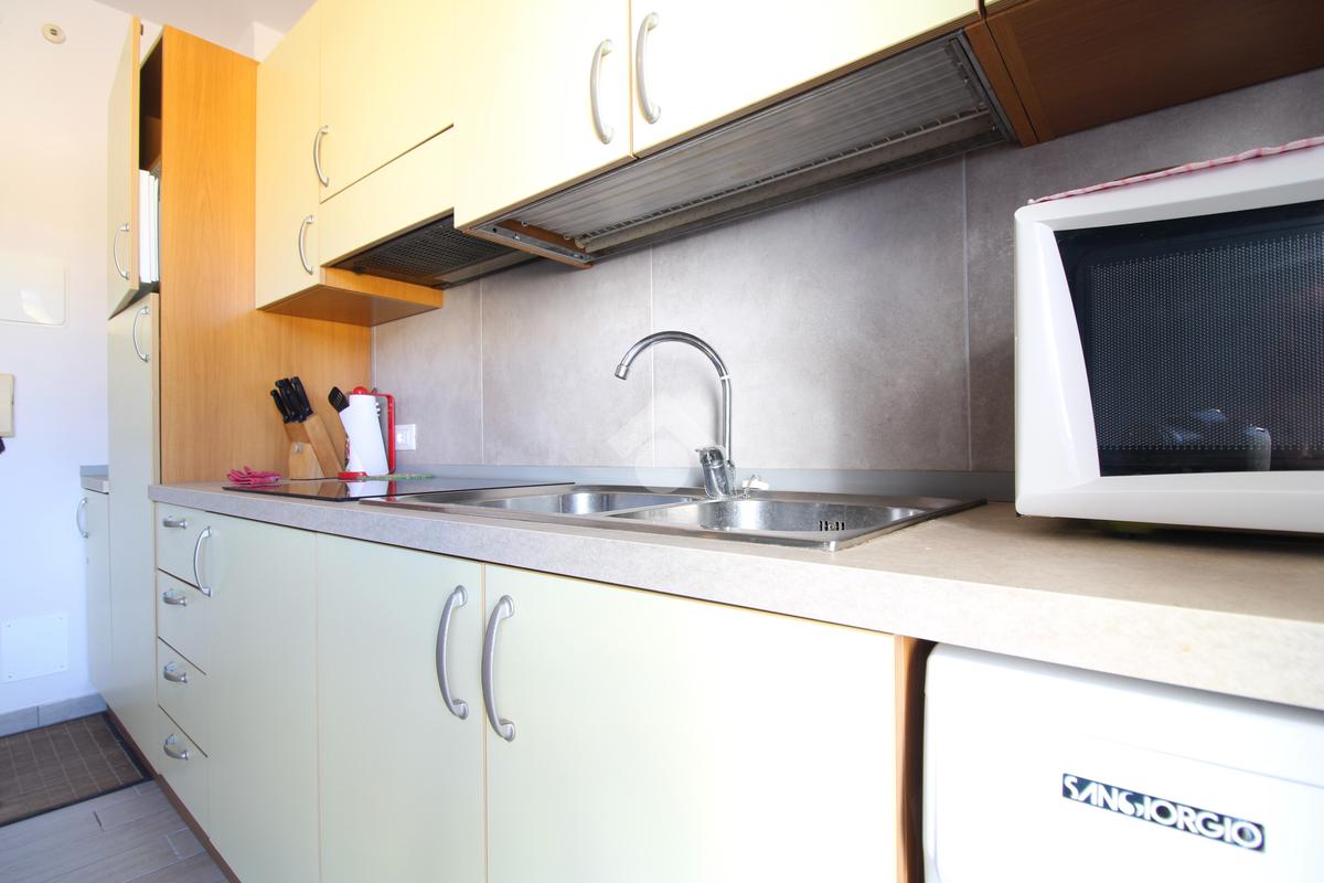 L’accesso all’appartamento avviene tramite porta blindata; l’ingresso si apre su un luminoso soggiorno con angolo cottura. Un comodo disimpegno con pompa di calore conduce alla zona notte, composta da un bagno finestrato con doccia e tapparella elettrica e da una camera matrimoniale di generose dimensioni.