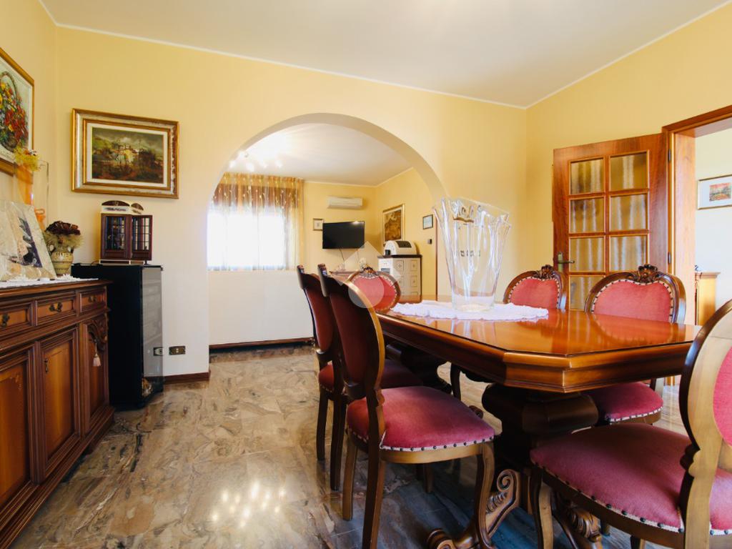 L’accesso avviene tramite una scala esterna indipendente che conduce a una porta blindata, aprendosi su un corridoio d’ingresso che divide funzionalmente gli ambienti. La zona giorno è composta da una spaziosa sala da pranzo, separata da un elegante arco a muro dal soggiorno principale, il quale gode di accesso diretto a un’ampia terrazza abitabile; la cucina, completamente indipendente, comunica anch’essa con l’esterno attraverso un’uscita sulla terrazza. La zona notte ospita tre generose camere da letto matrimoniali e due bagni entrambi finestrati, garantendo massima privacy e comfort. L'abitazione è rifinita con infissi in doppio vetro in legno levigato a mano e tapparelle elettriche. Per quanto riguarda il comfort climatico, l’immobile dispone di riscaldamento a radiatori integrato da una stufa a pellet e impianto di aria condizionata con tre split distribuiti in tutta la casa. Completa la proprietà una pratica tettoia esterna con due posti auto riservati.