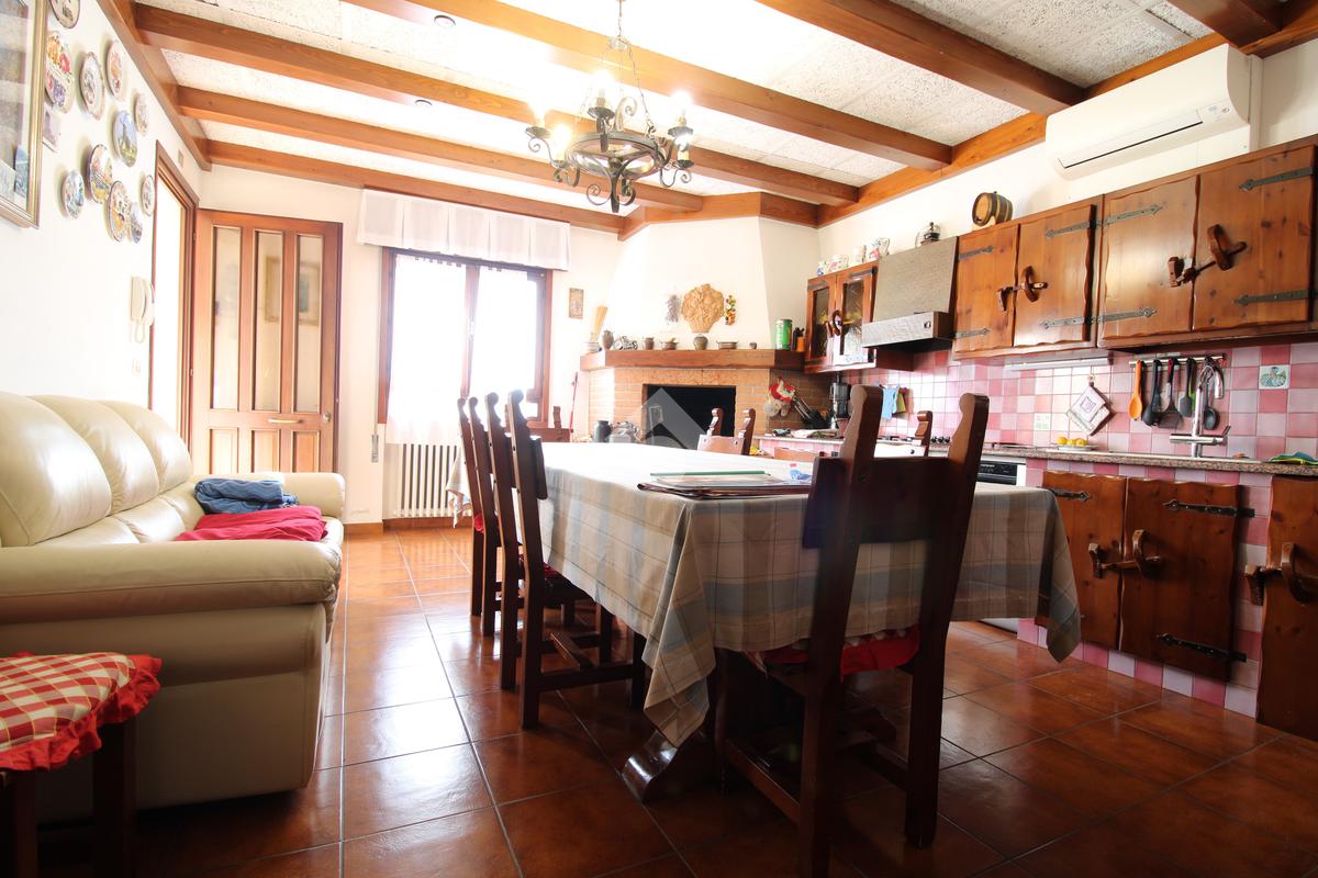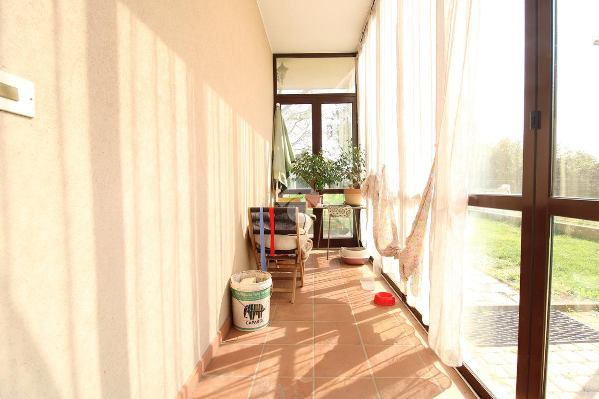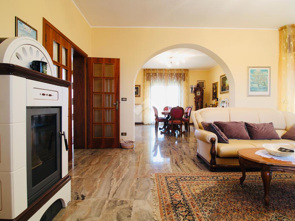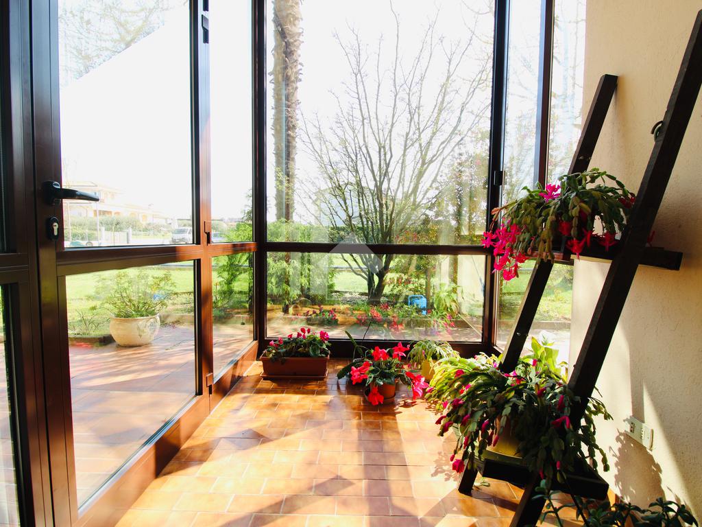 Al piano terra, l’accesso avviene tramite una luminosa veranda che conduce agli interni, dove un corridoio ben organizzato collega una spaziosa camera matrimoniale, un pratico ripostiglio e il bagno finestrato. Il cuore dell'abitazione è rappresentato dalla grande taverna con cucina a vista e caminetto a legna, un ambiente perfetto per la convivialità che gode di un accesso diretto a una seconda veranda affacciata sul giardino privato. La zona notte si completa con un'ulteriore camera matrimoniale, mentre la praticità quotidiana è garantita da un ampio garage collegato internamente all'abitazione. L’unità è dotata di riscaldamento autonomo a gasolio e aria condizionata.
