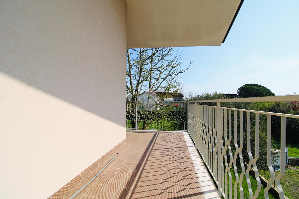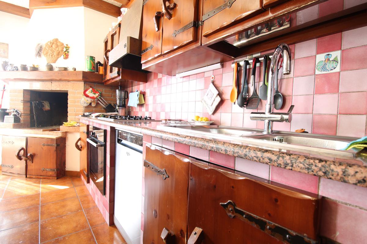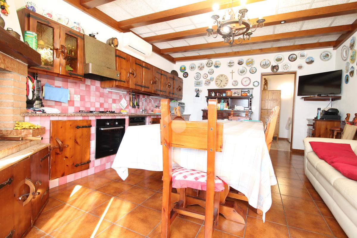 Il primo piano, accessibile tramite una scala esterna indipendente con porta blindata, si apre su un corridoio d’ingresso che divide funzionalmente gli ambienti. La zona giorno è composta da una spaziosa sala da pranzo, separata da un elegante arco a muro dal soggiorno con accesso diretto a un’ampia terrazza abitabile; la cucina, indipendente, comunica anch’essa con l’esterno. La zona notte ospita tre generose camere matrimoniali e due bagni finestrati. Le finiture includono infissi in doppio vetro in legno levigato a mano, tapparelle elettriche, riscaldamento a radiatori integrato da una stufa a pellet e climatizzazione con tre split. Completa la proprietà esterna una tettoia riservata con due posti auto e il giardino circostante che abbraccia l'intera villa.